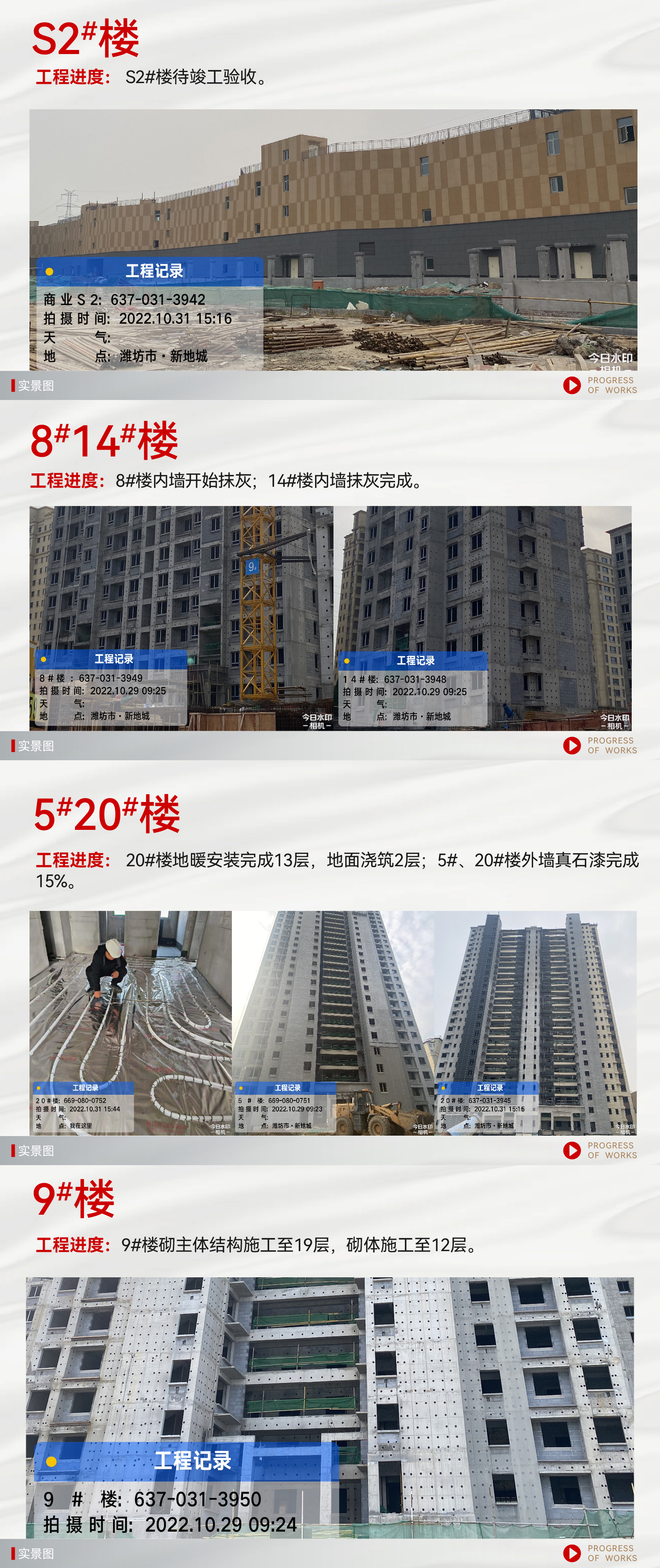 10月份山東區域項目工程進度